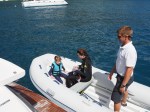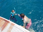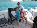 Da der erste Bootstripp so toll war, machten wir noch gleich einen zweiten Ausflug zu den Nachbarsinseln, wo wir wiederum tauchen und schnorcheln gingen. Die Strömung ermöglichte uns einen super Driftdive. Rhea und Deven wurden während unseres Tauchgangs vom Kapitän und der Assistant bespasst und fanden es total cool auf dem Boot…..