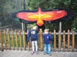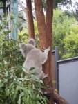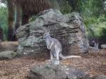 Zum Zoo-Eingang muss man zuerst eine Luftseilbahn bzw. Gondel (ja, Ihr hört richtig) besteigen, welche einem hoch zum Eingang bringt. Die Fahrt führt über den ganzen Zoo. Wiederum ein Zoo der superlative, da können wir in Europa definitiv nicht mithalten. Die haben sogar ein Nachthaus, in welchem alles nachtaktive Tiere zu finden sind. Per Zufall sind wir an die Vogelvorstellung gelaufen. Hey Leute, das glaubt Ihr uns nicht. Die Vögel bewegen sich frei und sind dermassen an Ihre Betreuer gewöhnt, dass diese mit den Tieren per Zeichen kommunizieren, so fliegt einem plötzlich ein Riesenvogel über den Kopf, mit einer Spannweite von 4.5 Meter und ca. 50-60 Kg. Die Vogelvorstellung läuft so weiter, bis zuletzt zwei verschiedene Vogelschwärme von Papageien über einem schweben, was unglaublich emotional ist. Dann gibt es noch ein Freilaufgehege mit Baumkängurus oder den verschiedenen am Boden lebenden Exemplaren. Unglaublich, die Dinger können riesig werden, dementsprechend wurde es Deven im Gehege ein bisschen mulmig im Bauch, 🙂 Der Vogelstrauss war ihm doch etwas zu gross… Auch der Tasmanische Teufel lässt nicht lange auf sich warten. Sieht irgendwie noch niedlich aus.