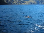 Weiter im Text: Die ganze Landschaft ist auch hier sehr schön. Aber alles dauert und dauert in einer grossen Touri-Gruppe mit sehr vielen sehr interessierten Rentnern mit aller Zeit der Welt… (nichts gegen Renter, hihihi) Nach ca. 7 Schwänkern kommen wir endlich in Richtung Meer. Und plötzlich: Tümmler am Heck, das sind die grossen Delphine. Hier lebt eine Gruppe von ca. 60 Delfinen. Wir springen ganz aufgeregt auf dem Schiff umher und Suchen nach weiteren Tiere…. Leider waren sie dann weg. Dann dümpelten wir weiter dem Meer entgegen, die Wellen wurden höher (ganz zur Freude von Mami, :)). Und da, auf ein paar Felsen (den Nee Islets) am Eingang des Fjords, lebt eine Pelzrobbenkolonie. Das war echt toll, diese süssen Tiere zu beobachten. Es leben auch Pinguine dort, aber leider haben wir die Dickschnabel- und Zwergpinguine nicht gesehen. 😦