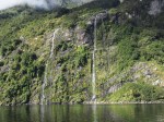 Zuerst fuhren wir auf dem Lake Manapouri bis zum anderen Seeufer, wo uns beim West Arm bzw. dem lokalen Kernkraftwerk zwei Cars erwarteten, einer für die Chinesen und einen für alle anderen 🙂 Es folgte eine holprige Busfahrt, den Wilmot Pass hinauf und auf der anderen Seite ins Tal zur Deep Cove, der Anlegestelle für die Schiffe, welche durch die Fjorde zum Meer hinaus fahren. Auch hier wurden unsere Nerven etwas auf die Probe gestellt, da die anderen Touris wegen jedem Stein, Wasserfall oder weiss der Geier was, anhalten wollten und Fotos machen….