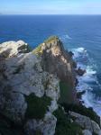 Nachdem wir gelandet sind, fuhren wir kurz zurück ins Hotel und da wir ein Hoch haben, haben wir uns kurzerhand ein Guide organisiert und fuhren gleich los. Es ging von Kapstadt in Richtung Noordhoek bzw. Hout Bay, Scarborough zum Eingang des Nationalparks „Kap der guten Hoffnung“. Der Weg war schon ein Highlight: in Hout Bay, hatten wir das Vergnügen mit einem relativ grossen Seelöwen ein Schwätzchen und Tätschchen zu halten. Als Rhea ein bisschen übermütig wurde, hat er nach ihr gegriffen, das hat unserer lieben Tochter dann doch ein bisschen Angst gemacht, hihihihihihihi. Dann ging es an Straussenfarmen und der Küste entlang weiter, dann wurden wir von einer Familie Baboons (auf Deutsch, Paviane) aufgehalten und so stauten sich die Autos. 🙂 Dann kamen wir am Kap an und gingen hoch zum Leuchtturm. Wir sind sehr beeindruckt, über so viel Schönheit und Grenzenlosigkeit. Hier kommen der Atlantik und der Indische Ozean zusammen. Unser Guide erklärt uns sehr viel über das Land, die Kultur und die Natur, einfach nur der Hammer. Aber es schwingt immer ein bisschen die Apartheit mit, was natürlich kein gutes Gefühl hinterlässt. Dann zeigt er es uns so viel schöne Seiten dieses Landes und wir lernen: Der Atlantik, kalt, hohe Wellen, andere Farbe und auf der anderen Seite der Indische Ozean: Ruhig, dunkler und wärmer.