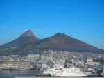 Nun geht es gleich weiter und wie: Nachdem wir zeitig aufgestanden sind und uns im Eiltempo das Frühstück reinstopften, fuhren wir an den Hafen zum Heliport, wo wir einen Rundflug über Kapstadt und den Tafelberg machten. Es war herrliches Wetter, jedoch bei kühlen 13°C. Kaum abgehoben schon das erste Highlight: Wir sehen zum ersten mal in unserem Leben Wale. WOW ist das beeindruckend! So riesig und anmutig, wir sind von den Socken. Wir fliegen weiter über Robben Island. Das ist die Gefängnisinsel, wo Nelson Mandela inhaftiert war und das über 20 Jahre. Das Gefängnis war noch lange in Betrieb, jedoch heute eingestellt und man kann die Insel noch besuchen, aber nicht ins Gefängnis rein. Es ging weiter über das World Cup Station von 2010: Hier haben 65000 Menschen Platz.