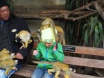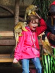 Hier gibt es wirklich Vögel in allen Farben und Grössen. Wir sind beeindruckt, auch ohne gleich den Wunsch zu erlangen Ornithologe zu werden, 🙂 Siehe Fotos weiter unten. Da Papa wieder mal am „dudeln“ ist, verliert er den Rest der Familie. Als ich mich auf die Suche nach dem Rest machte, hörte ich die Kinder und lief in einen geschlossenen Käfig. Was mir keiner sagte ist, dass es ein Affenhaus ist, wo man durchlaufen kann und so bin ich innerhalb von Sekunden von Affen befallen worden. So kam rasch die Aufseherin zu rennen: Mister, Mister, Sie müssen so rasch als möglich den Rucksack ablegen, das Essen weglegen und sämtliche Taschen leeren! 🙂